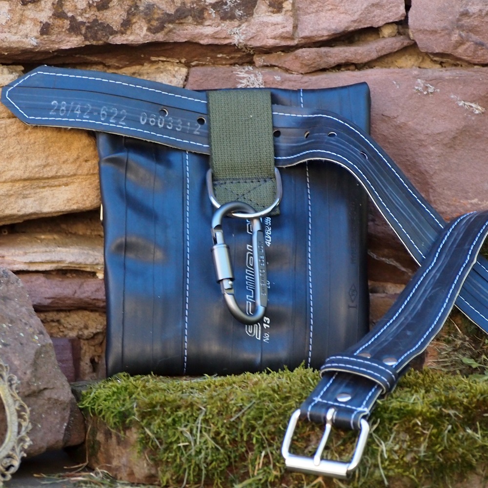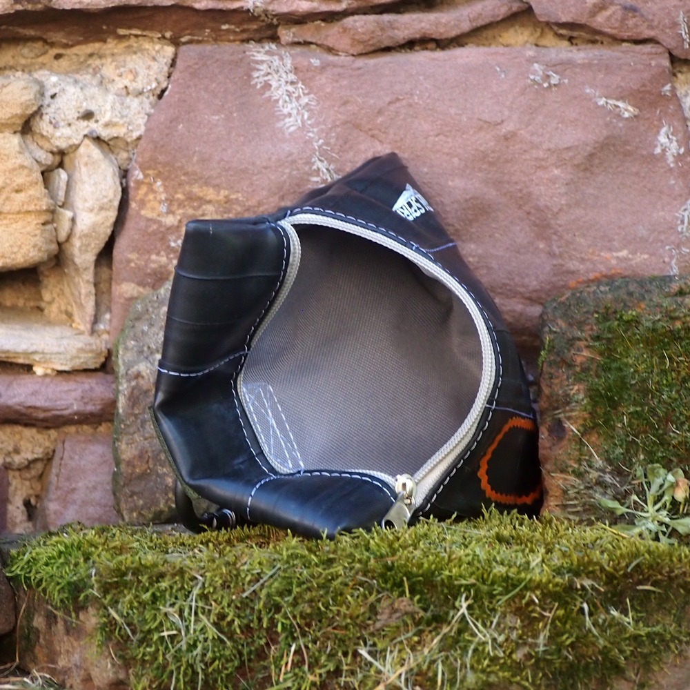 Der Beutel besteht aus extrem robusten, wasserabweisenden Fahrradschlauchbahnen.