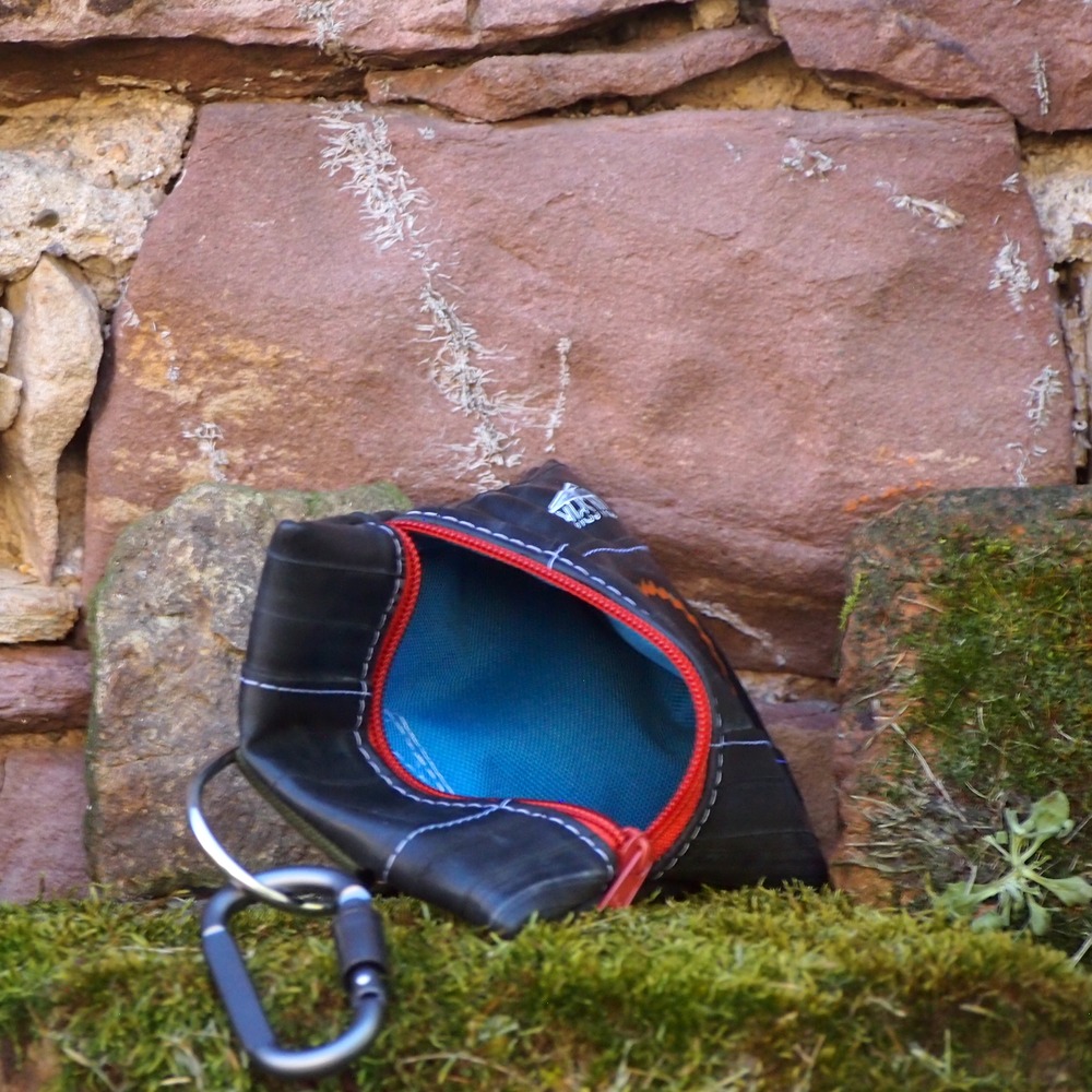 Der Beutel besteht aus extrem robusten, wasserabweisenden Fahrradschlauchbahnen.