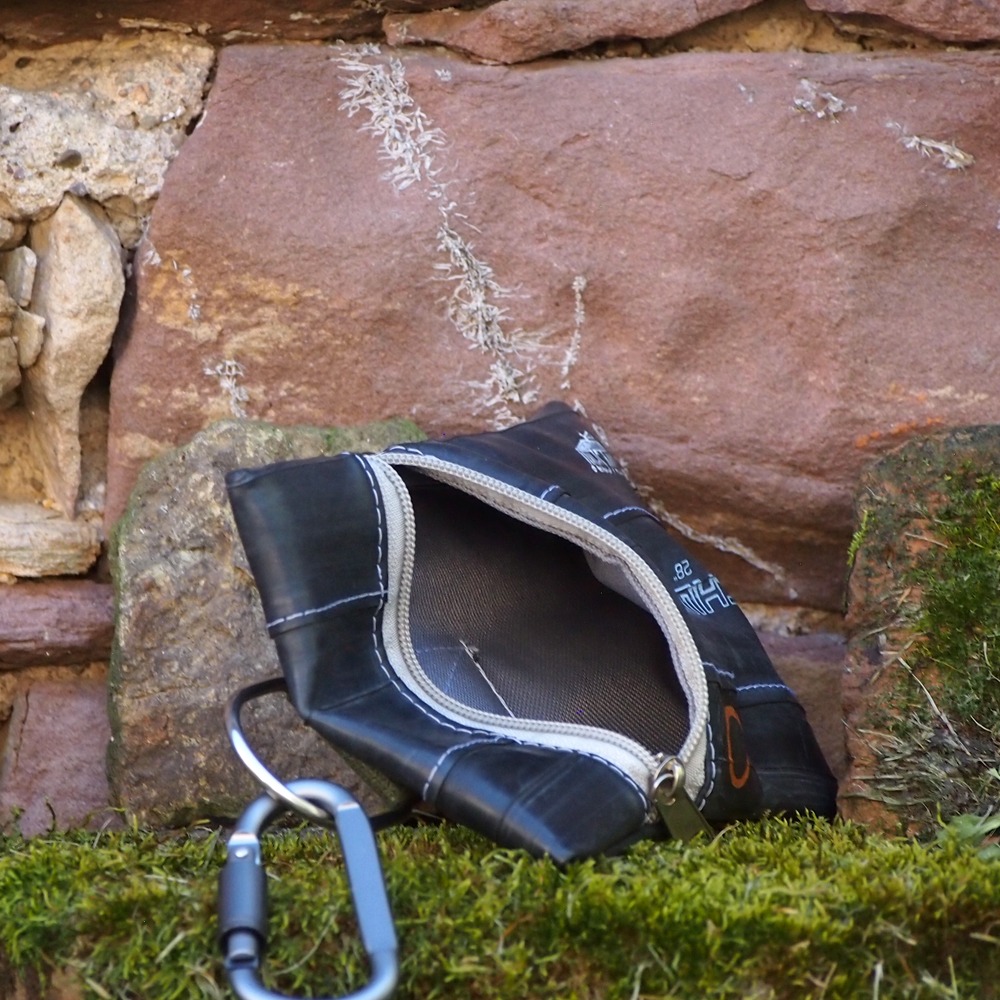 Der Beutel besteht aus extrem robusten, wasserabweisenden Fahrradschlauchbahnen.