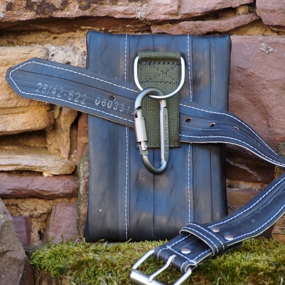 Einzelstück, aus recyceltem Fahrradschlauch, Baumwollgurt aus Armeebeständen von 1968