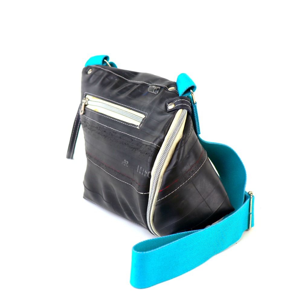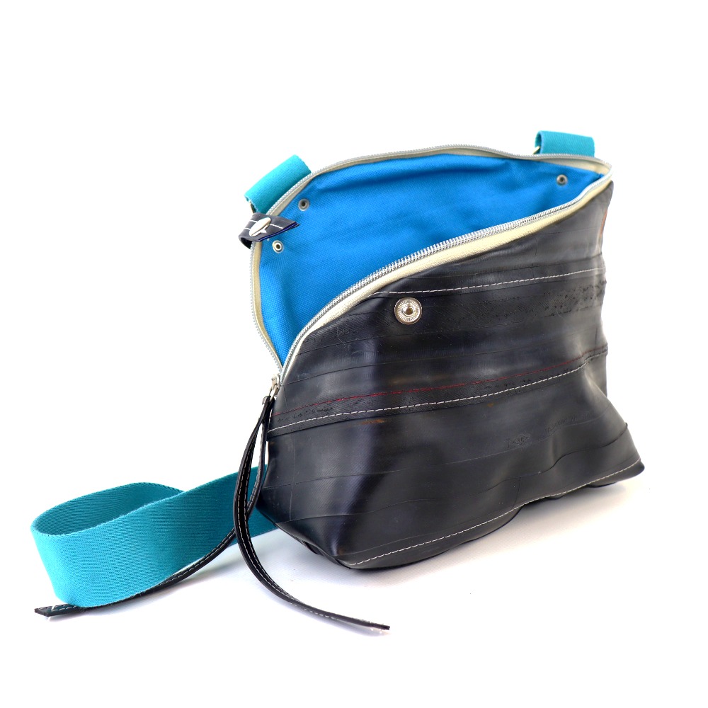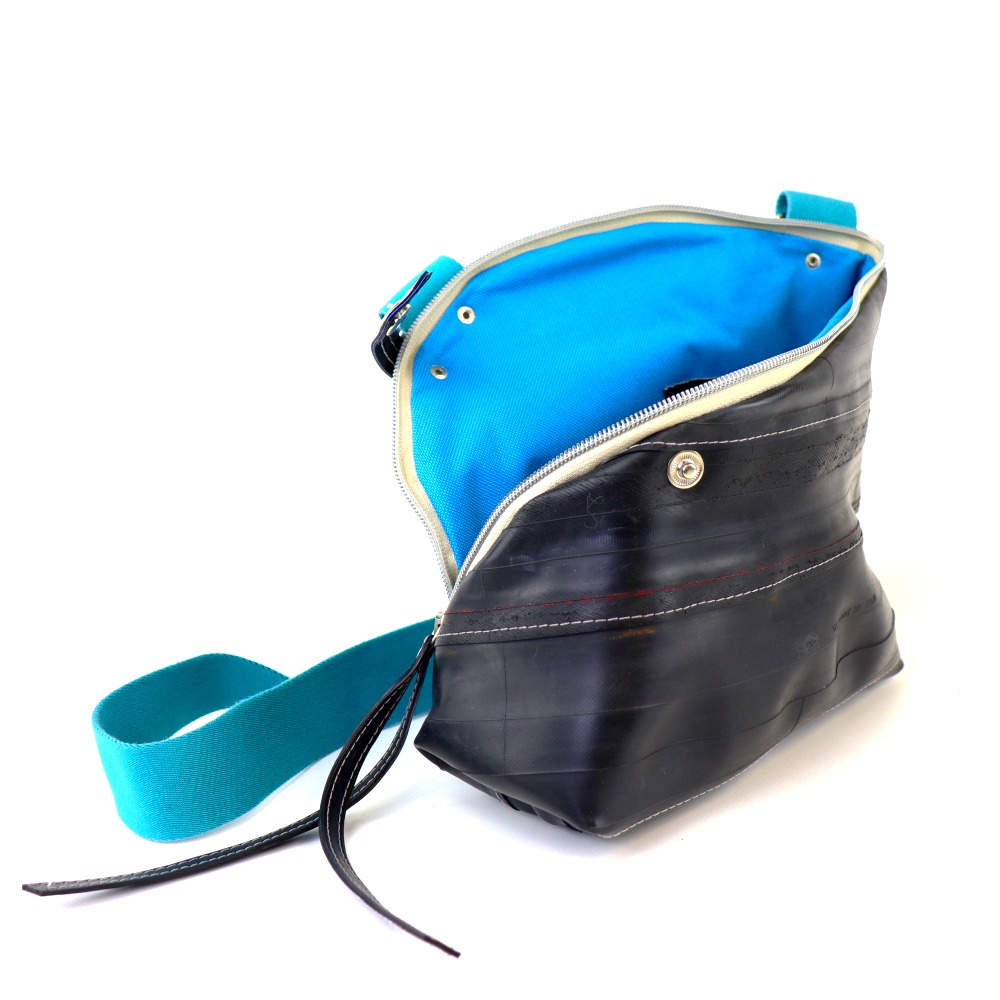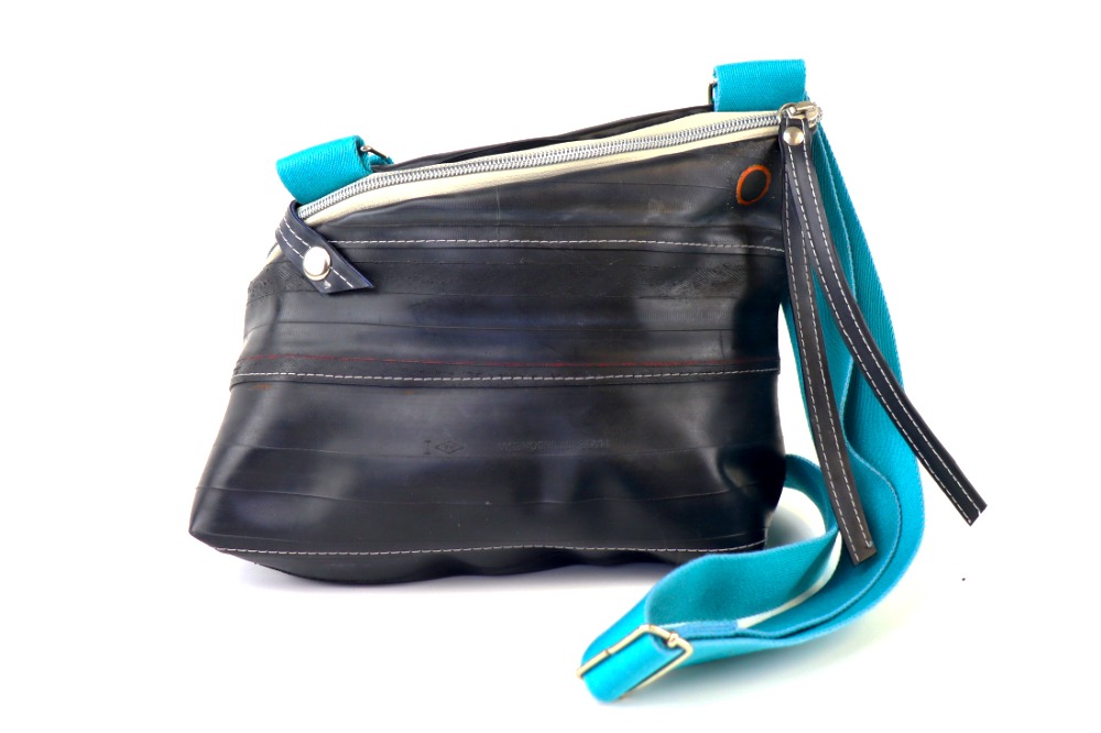 Diese Tasche ist aus strapazierfähigem Fahrradschlauch gefertigt.