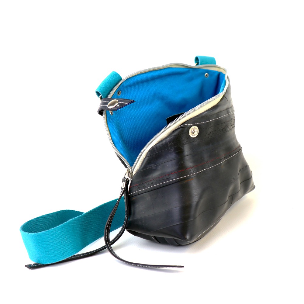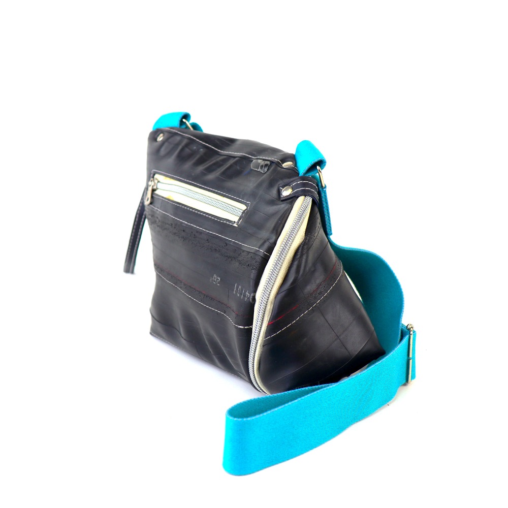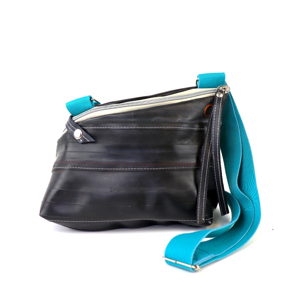 Diese Tasche ist aus strapazierfähigem Fahrradschlauch gefertigt.